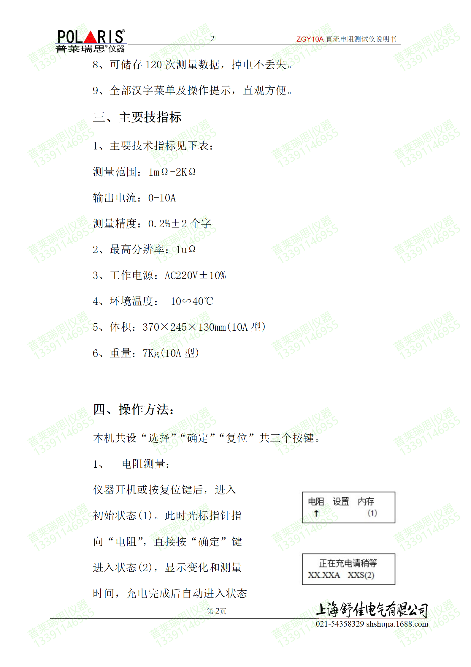 5、保护功能完善,能可靠保护反电势对仪器的冲击,具有自动放电指示功能。