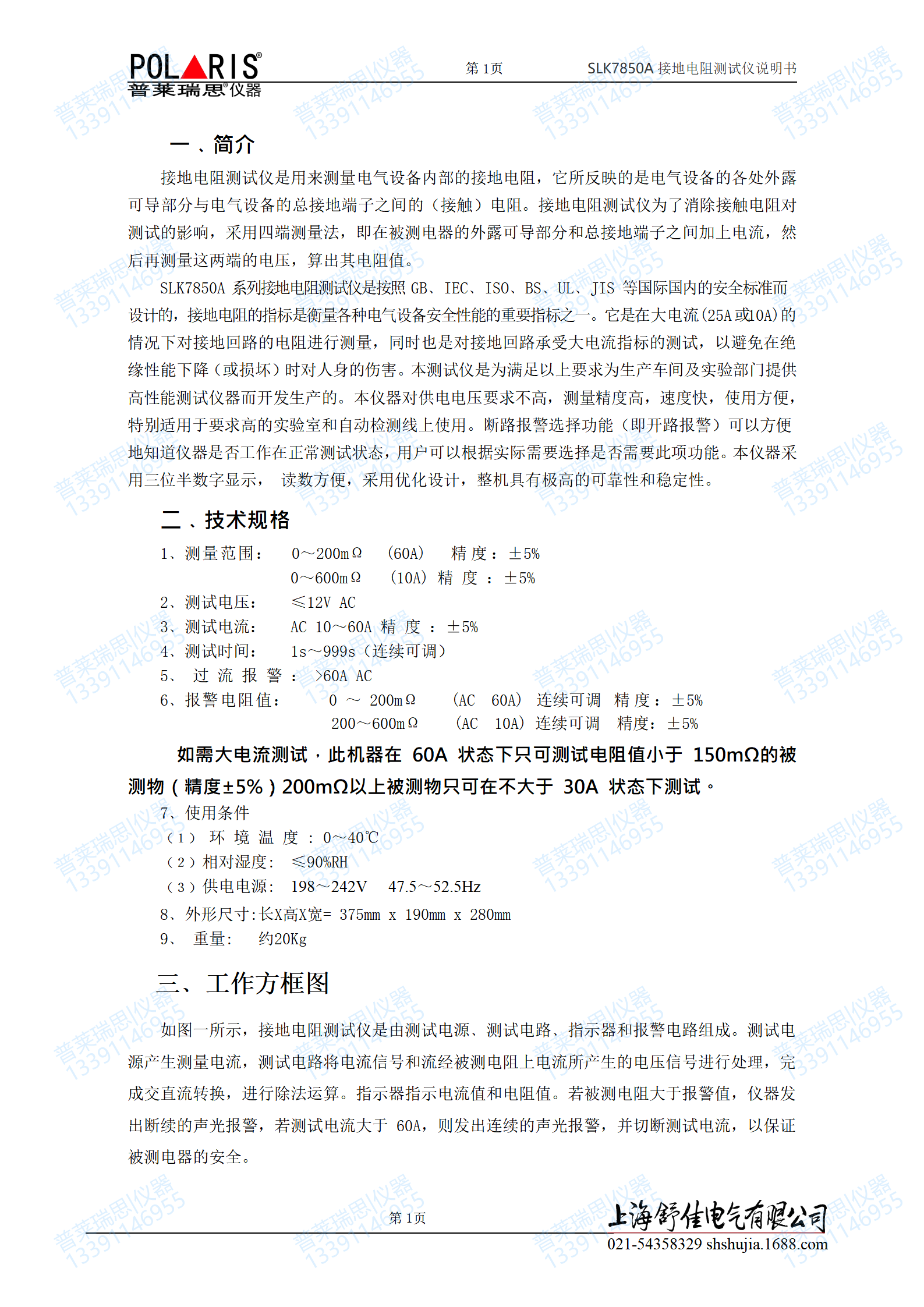 范围: 0~200mΩ (60A) , 0~600mΩ, (10A) 精 度 :±5%, 电压:≤12V AC,电流: AC 10~60A 精 度 :±5%,时间: 1s~999s(连续可调),过流报警 : >60A AC,0 ~ 200mΩ (AC 60A) 连续可调 精度:±5%,200~