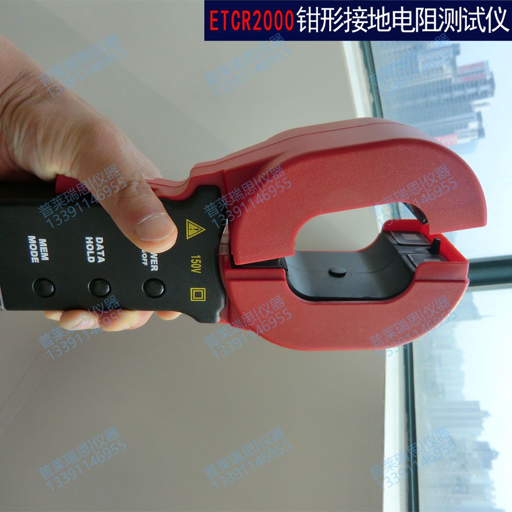 ETCR2000钳形接地电阻仪用于电力、电信、气象以及其它设备的接地电阻测量。电阻仪有长钳口及圆钳口之分,长钳口特别适用于扁钢接地线的场合。传统的接地电阻测量方法是采用电压—