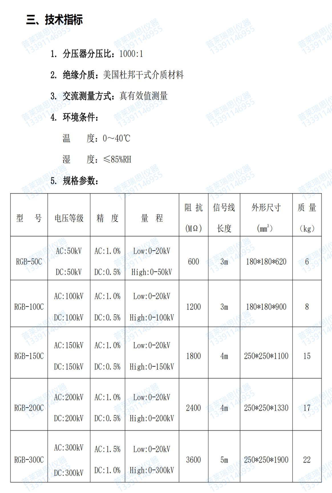 3.安全可靠:SGB-C 系列交直流数字高压表是由高压分压器和低压显示仪表构成,高压分压器采用美国杜邦填充材料,特种工艺灌封,结构更小,重量更轻,内部局部放电量降到最低,可靠性更高。不存在漏油问题。工作时高压分压器和低压仪表采用同轴电缆连接,高低压部分距离较远,工作安全可靠。
