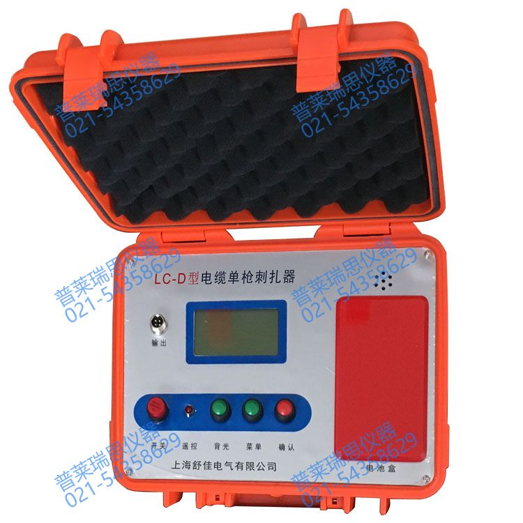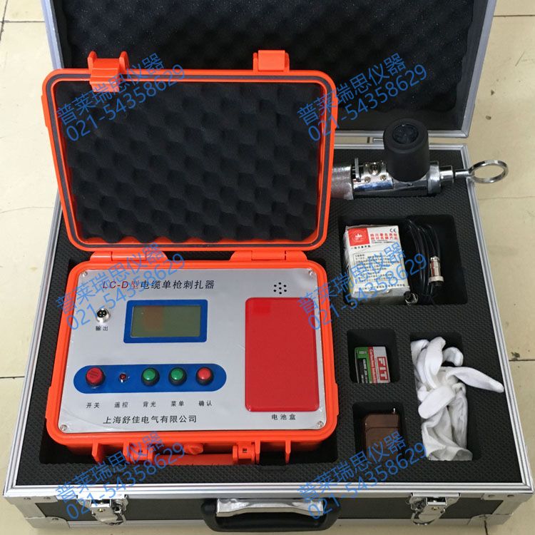LC-D电缆安全刺扎器电缆刺扎器是我公司在总结国内外多家电缆安全刺扎器的基础上推出的新一代电缆安全刺扎工具,它具有双角度刺扎被测电缆,功能可遥控、线控自动定时两种控制方式。极大地提高了电缆刺扎的安全性、及可靠性。实现了一次刺扎两个角度同时完成,是电缆施工、维护工作者的必备工具。