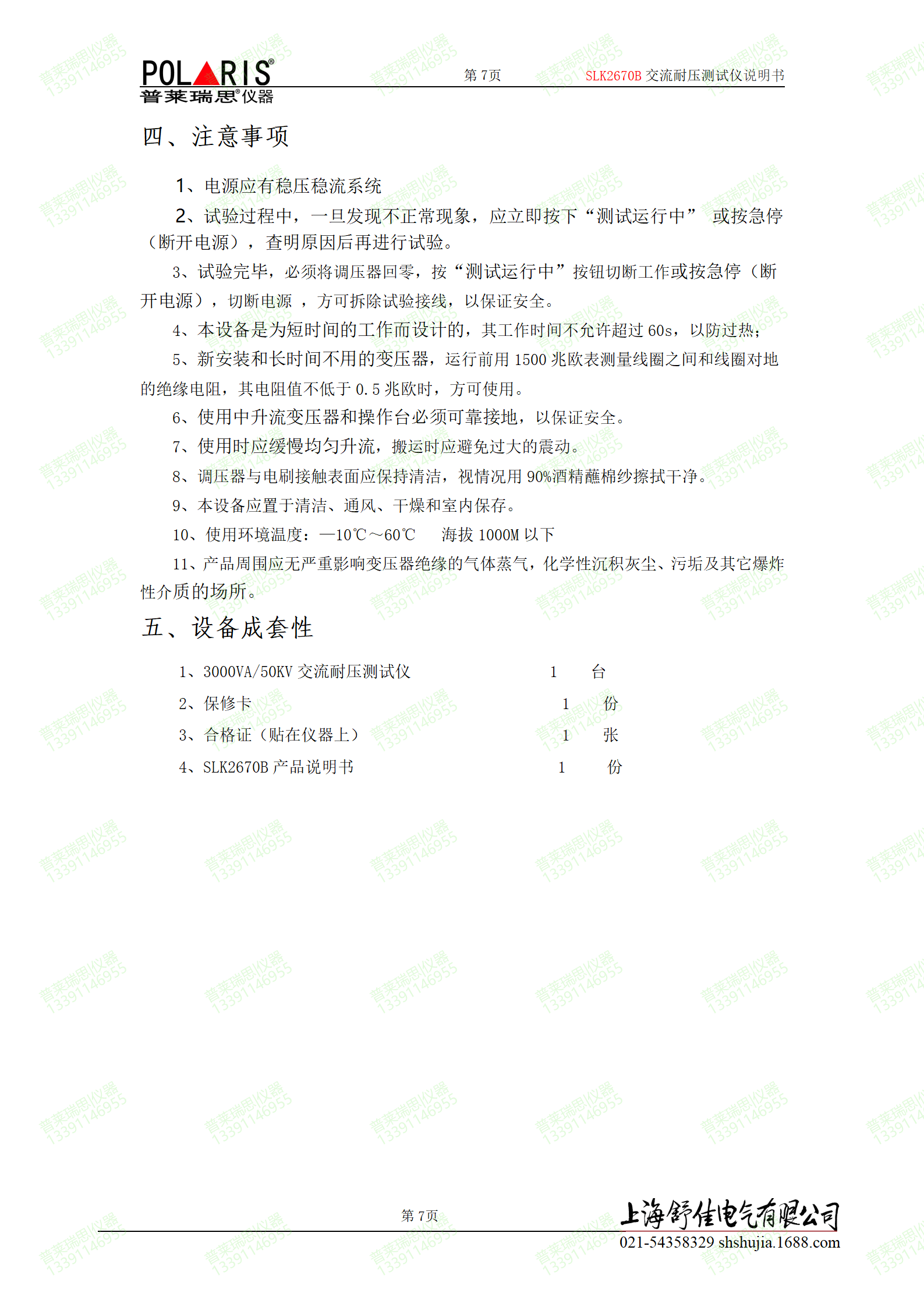 SLK2670B耐压测试仪是测量耐压强度的仪器,它可以直观、准确、快速、可靠地测试各种被测对象的击穿电压、漏电流等电气安全性能指标,并可以作为高压源用来测试元器件和整机性能。舒佳耐压测试仪产品系列,是按照IEC、CSA、UL、JIS等国际国内的安全标准要求设计的,耐压输出0.2KV~50KV,漏电流0~60mA。适合各种家用电器、电源开关、电线电缆、变压器、接线端子、高压胶木电器、电机、医疗、化工、仪器仪表等,以及强电系统的安全耐压和漏电流的测试、同时也是科研实验室、技术监督部门耐压试验设备。<br />