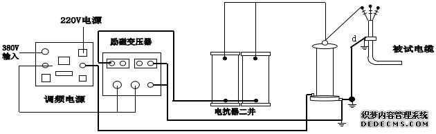 6.3.1.300mm2/10kv电缆长度1公里的交流耐压试验,最高试验电压22kv,为方便搬运,将电抗器分为二节,每节电抗器电压为30KV,每节电流为2A,每节电感量为50H。