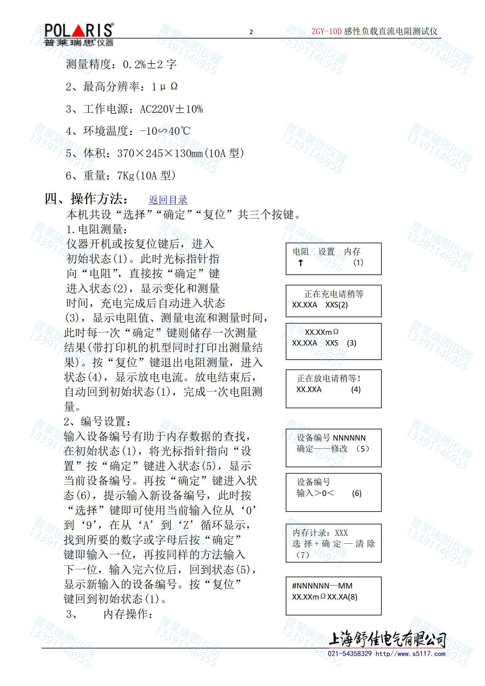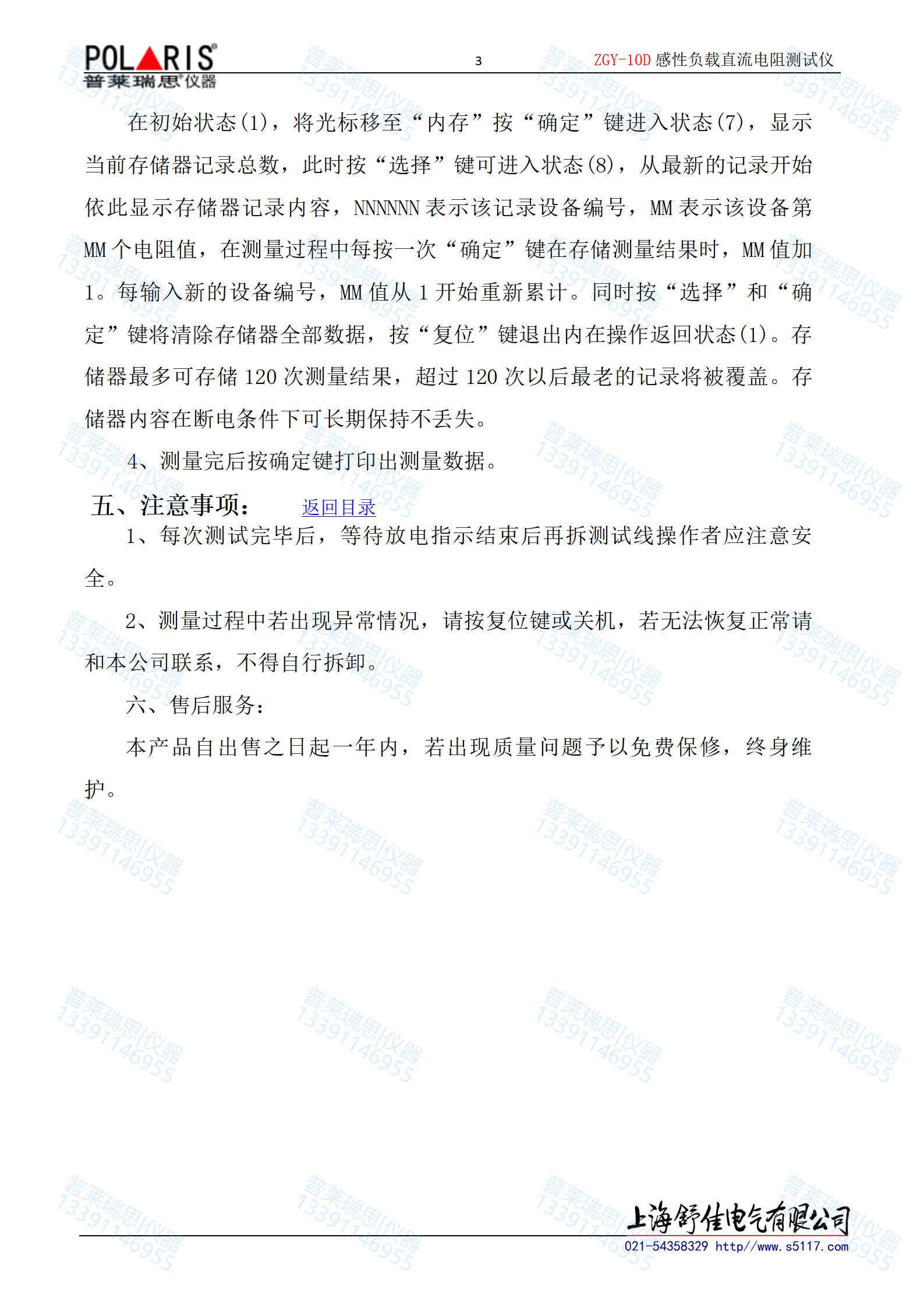 5、保护功能完善,能可靠保护反电势对仪器的冲击,具有自动放电指示功能。