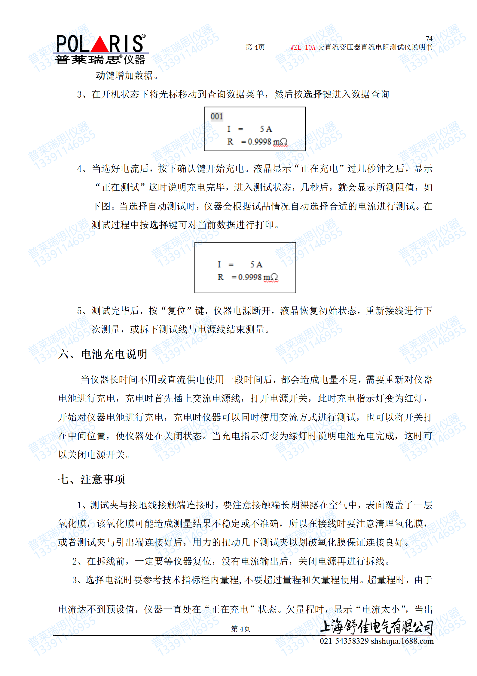 WZL-10A交直流变压器直流电阻测试仪使用明书